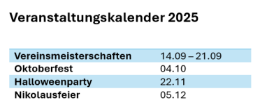 Änderungen vorbehalten: Bitte berücksichtigt, dass manche Aktivitäten nicht stattfinden werden (wegen Wetter oder sonstigem) bzw. der Termin sich ändern wird. Wann, welche und ob überhaupt Aktivitäten dieses Jahr stattfinden, wird entsprechend über unsere verschiedenen Medien rechtzeitig publiziert.